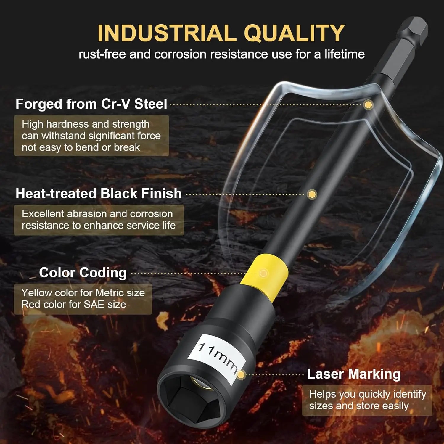 Magnetic Nut Driver Set 18-Piece With Extensions And Impact Adapter