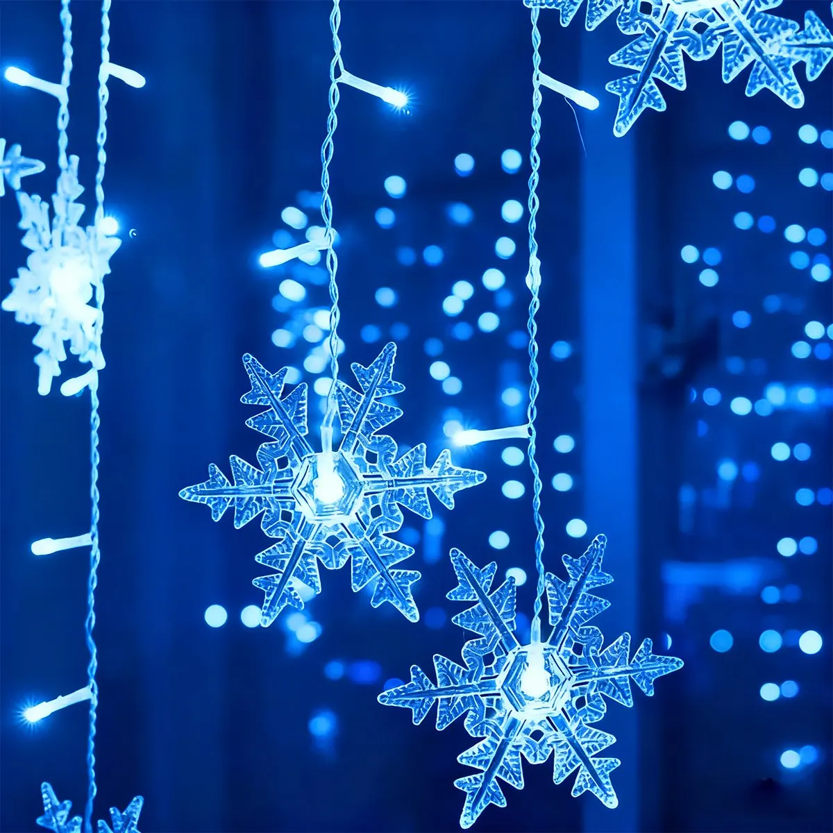1pc 96 LED Solar Powered Snowflakes Curtain Lights Christmas Snowflakes Waterproof Lights For Christmas Party Wedding Decoration