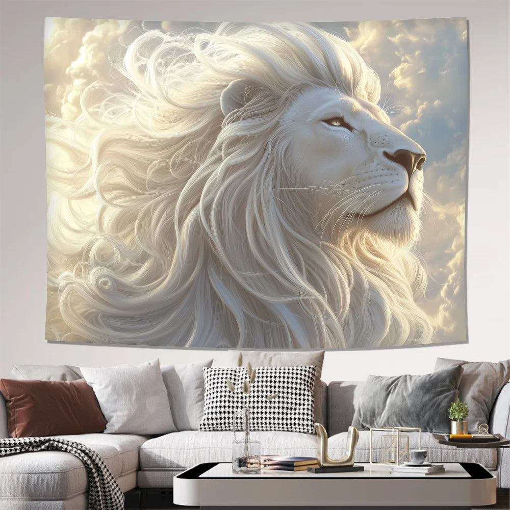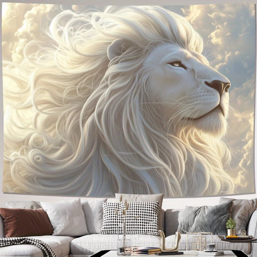 1pc Majestic White Lion Tapestry with Flowing Mane - Polyester Fabric for Living Room, Indoor and Outdoor Room Decor