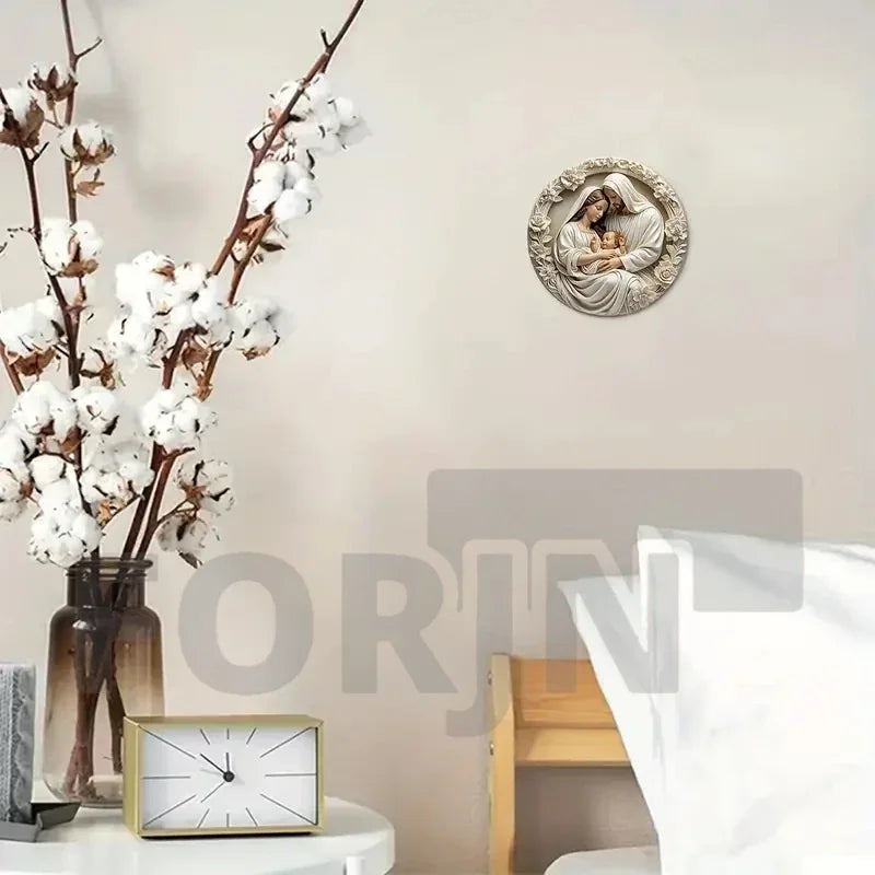 2D "Nativity" Christmas Themed Art Wreath Round Metal Sign,Home,room,Cafe, Farmhouse Office Wall Decor,Jesus Enthusiasts's Gift