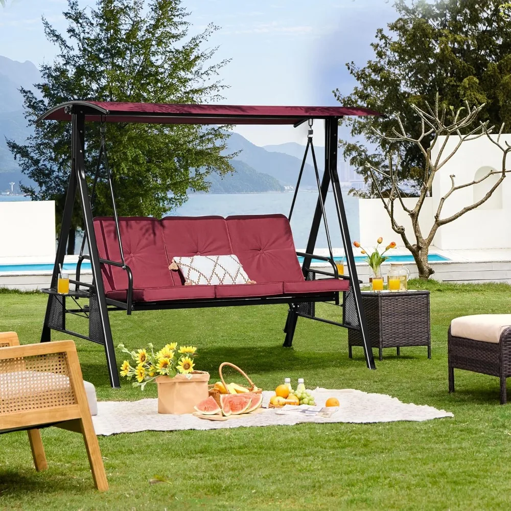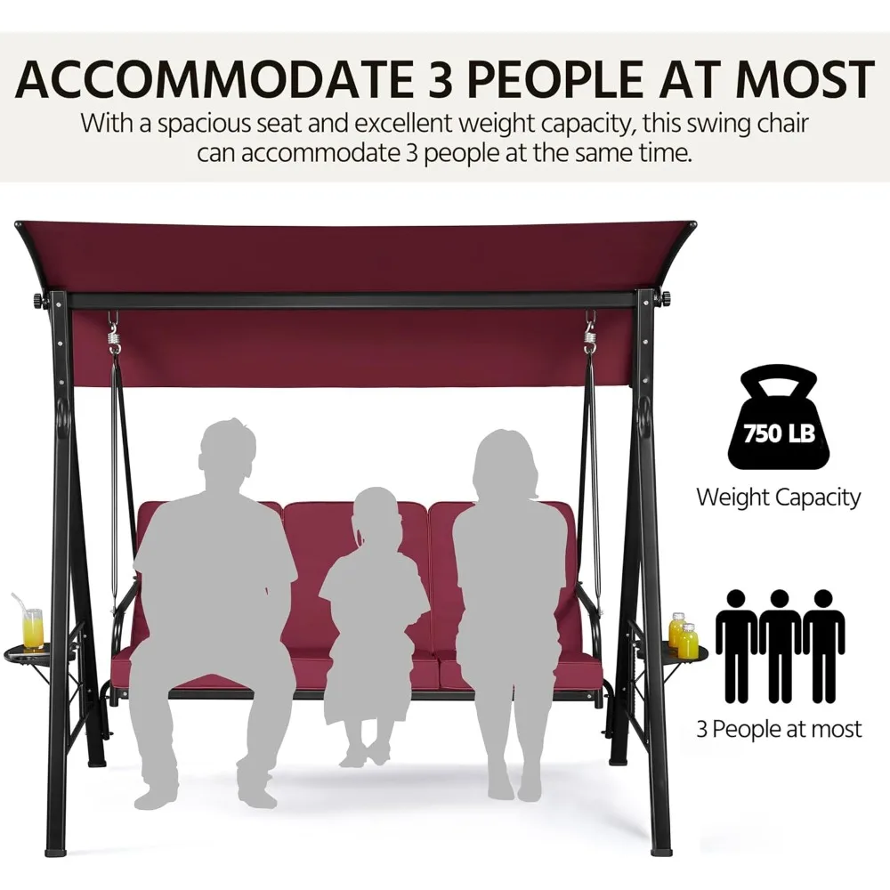 3-Seat Outdoor Patio Swing Chair, Deluxe Outdoor Patio Porch Swing with Weather Resistant Steel Frame, Adjustable Tilt Canopy f