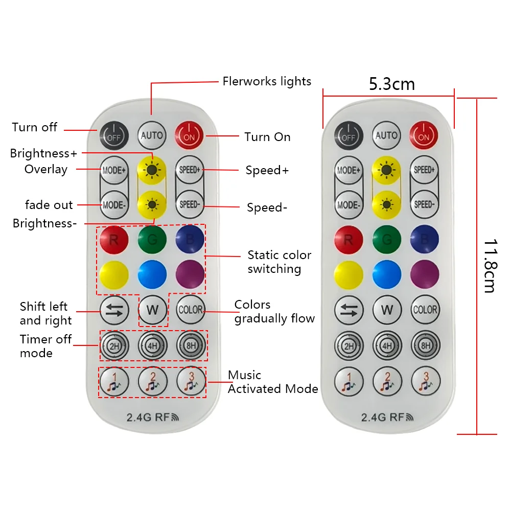 Individually control the color of each led light via app; easily control via the remote get multiple functions; Also directly change the color for the whole strand, adjust brightness,