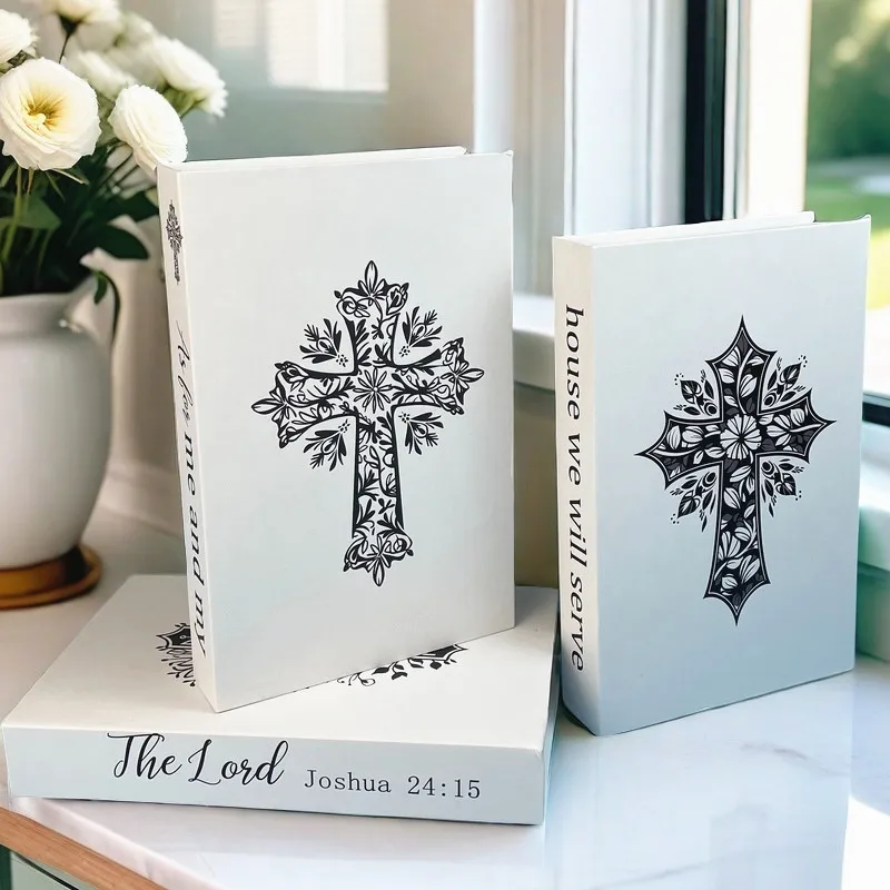 Christianity Fake Book Storage Box Jesus Jehovah Virgin Mary Bible Decorative Coffee Table Books Cross Good Shepherd Home Decor