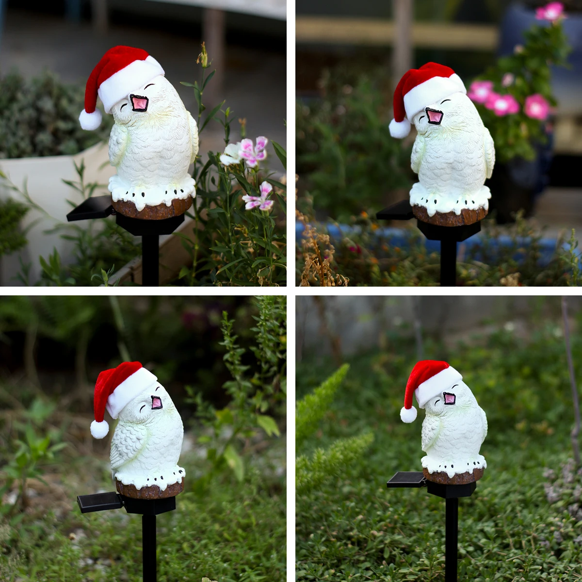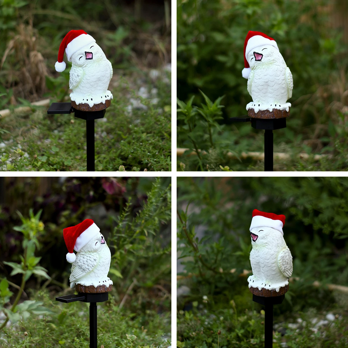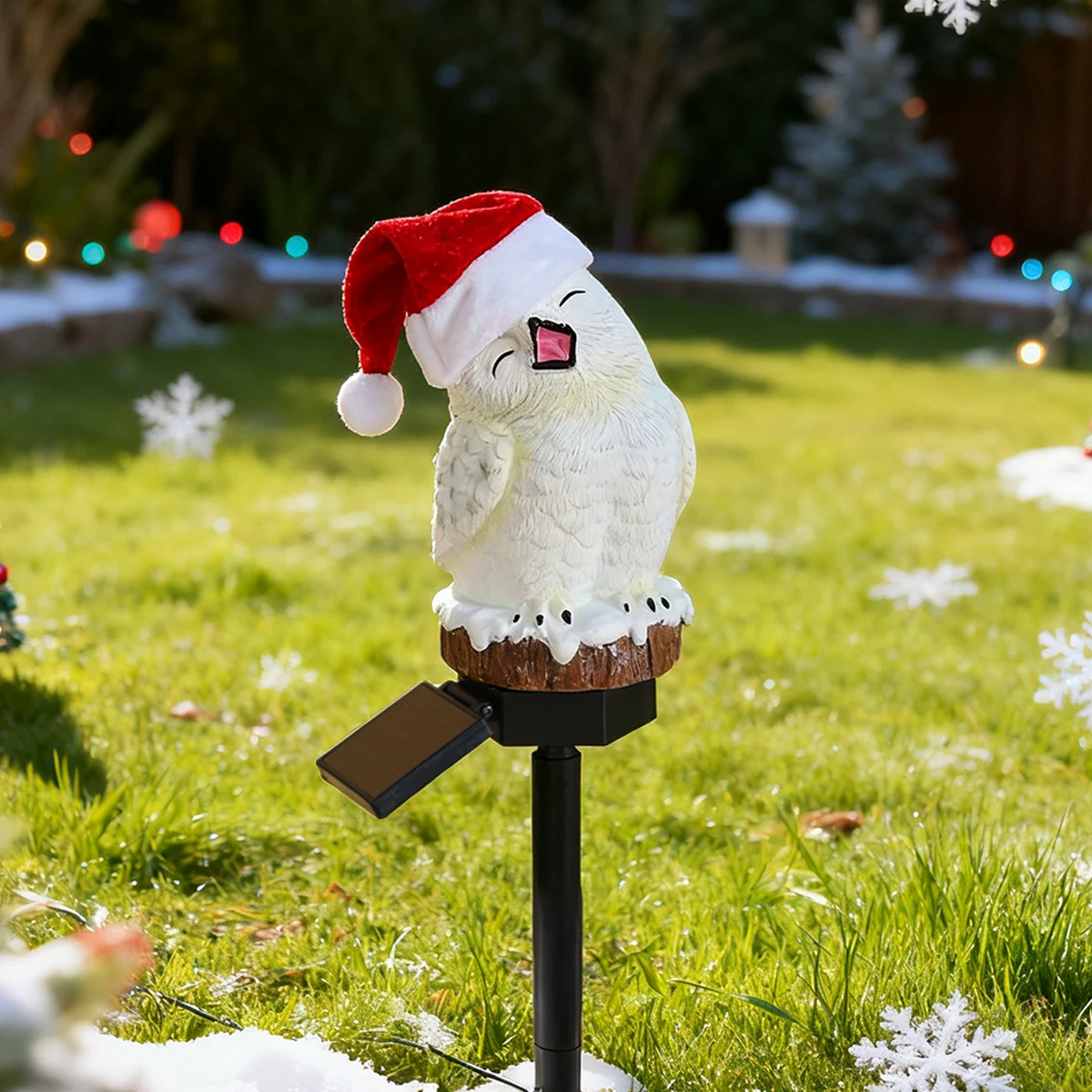 Christmas Snowy Owl Luminous Outdoor Statue - Solar Simulated Animal Lawn Light, Christmas Garden Decorative Crafts