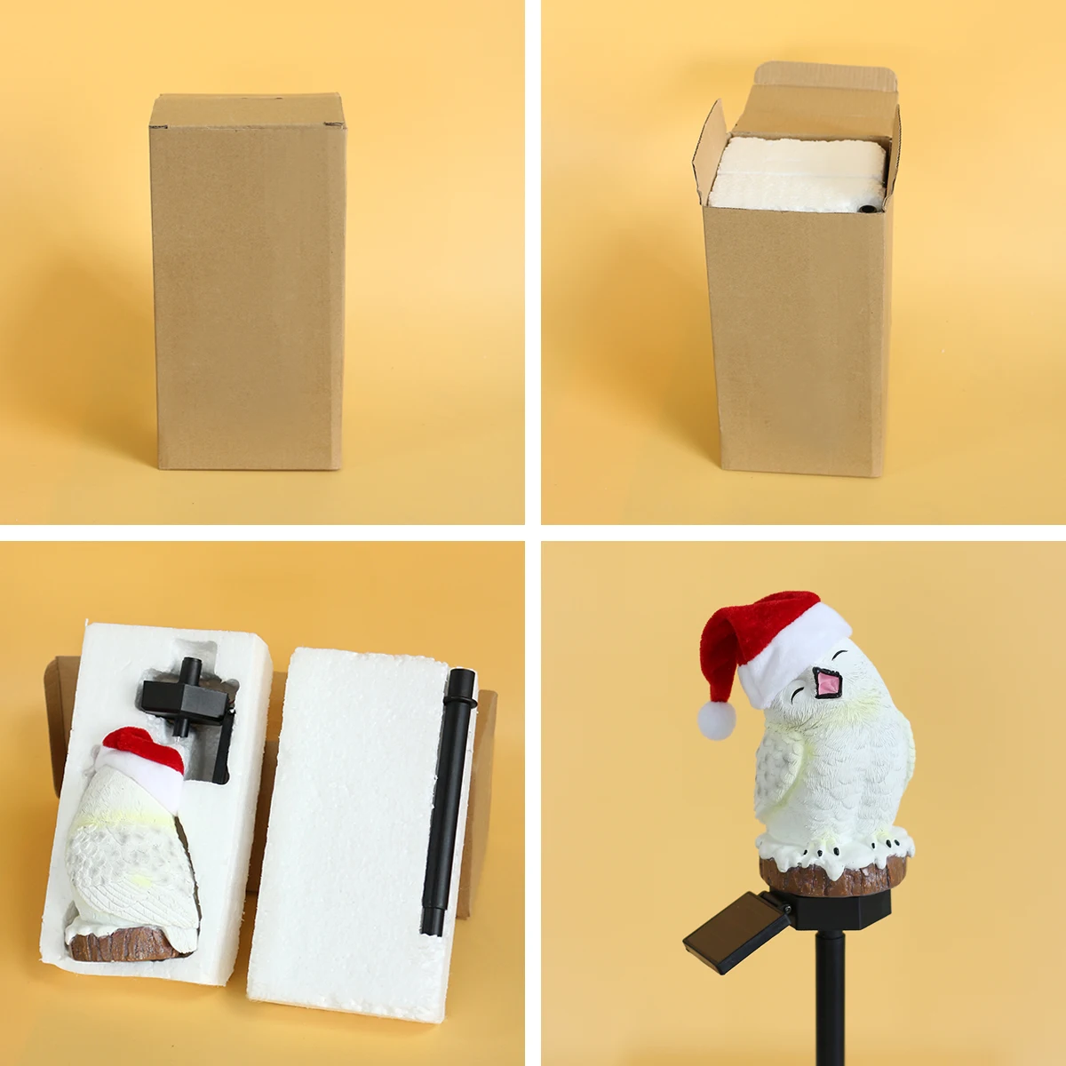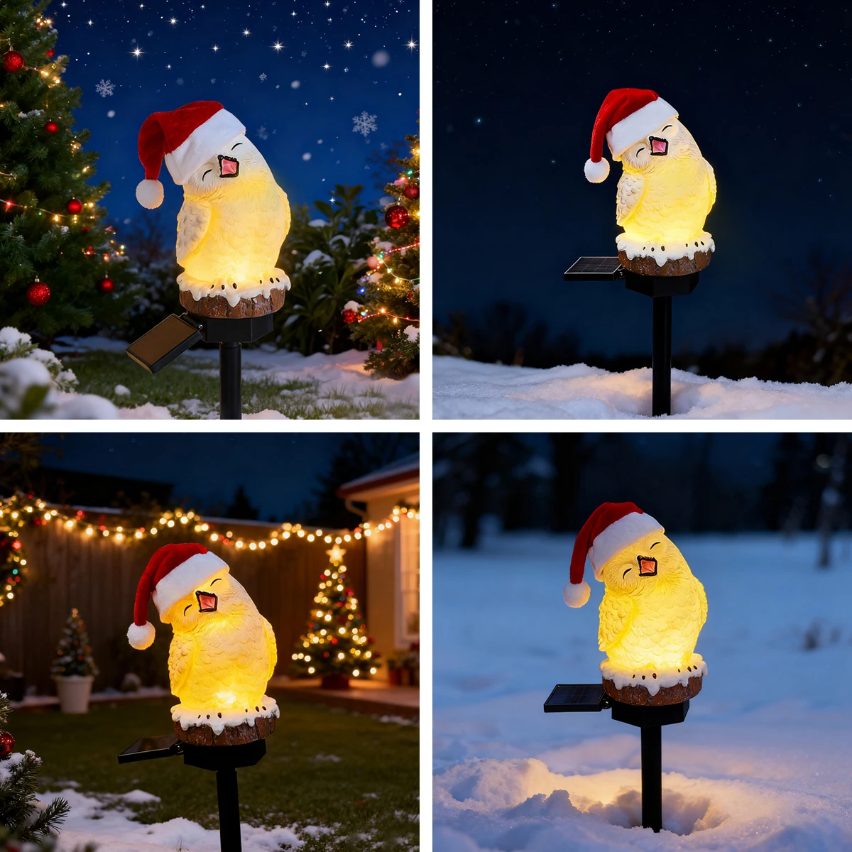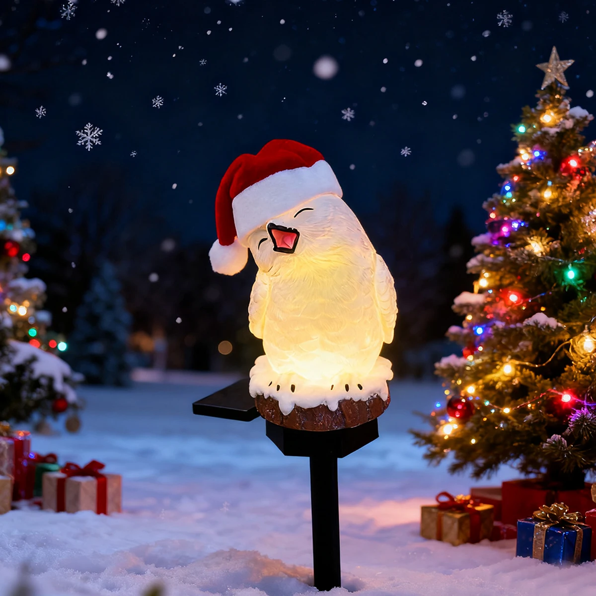 Christmas Snowy Owl Luminous Outdoor Statue - Solar Simulated Animal Lawn Light, Christmas Garden Decorative Crafts