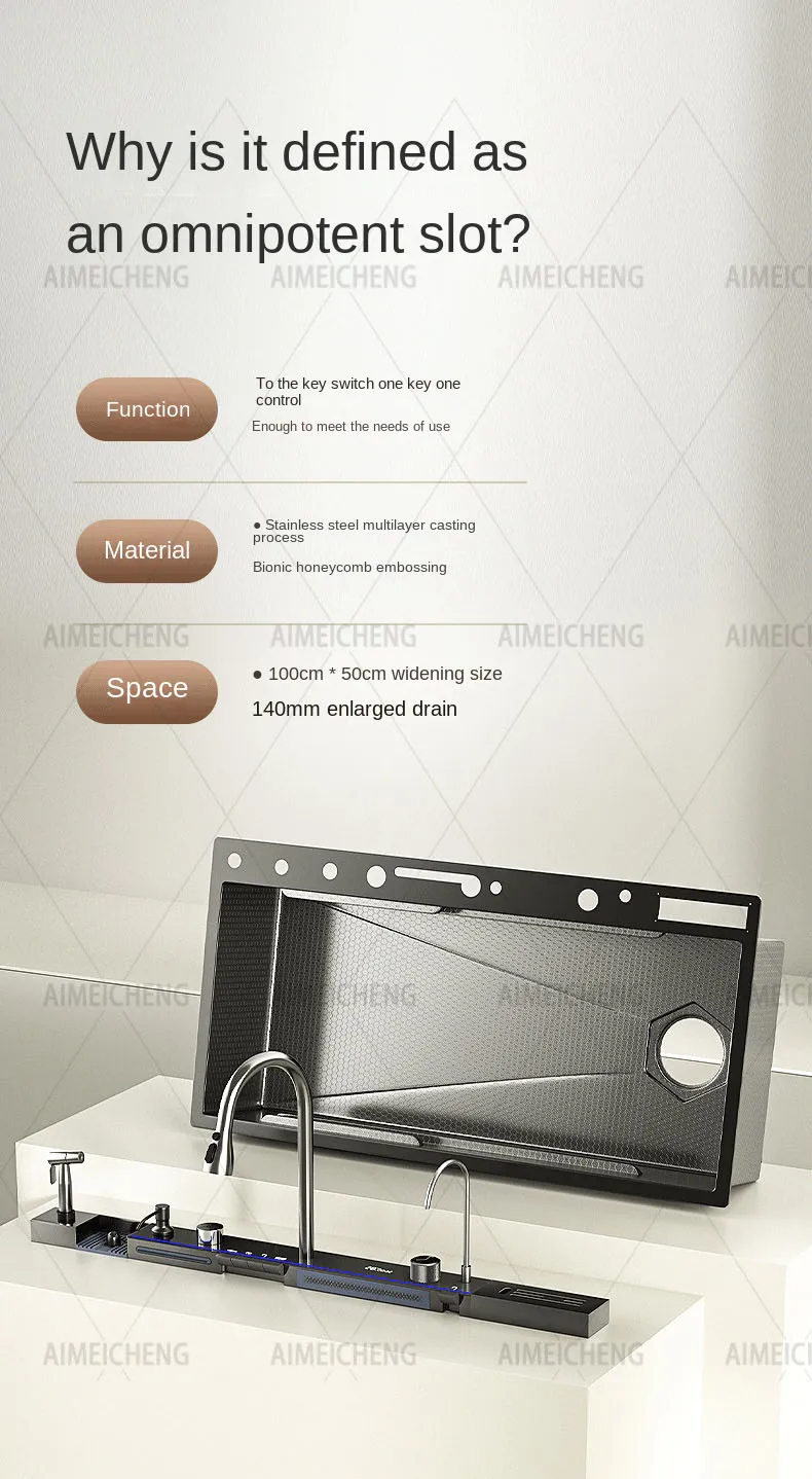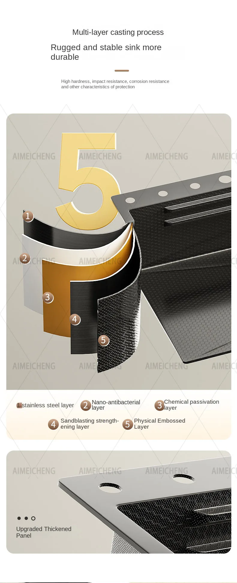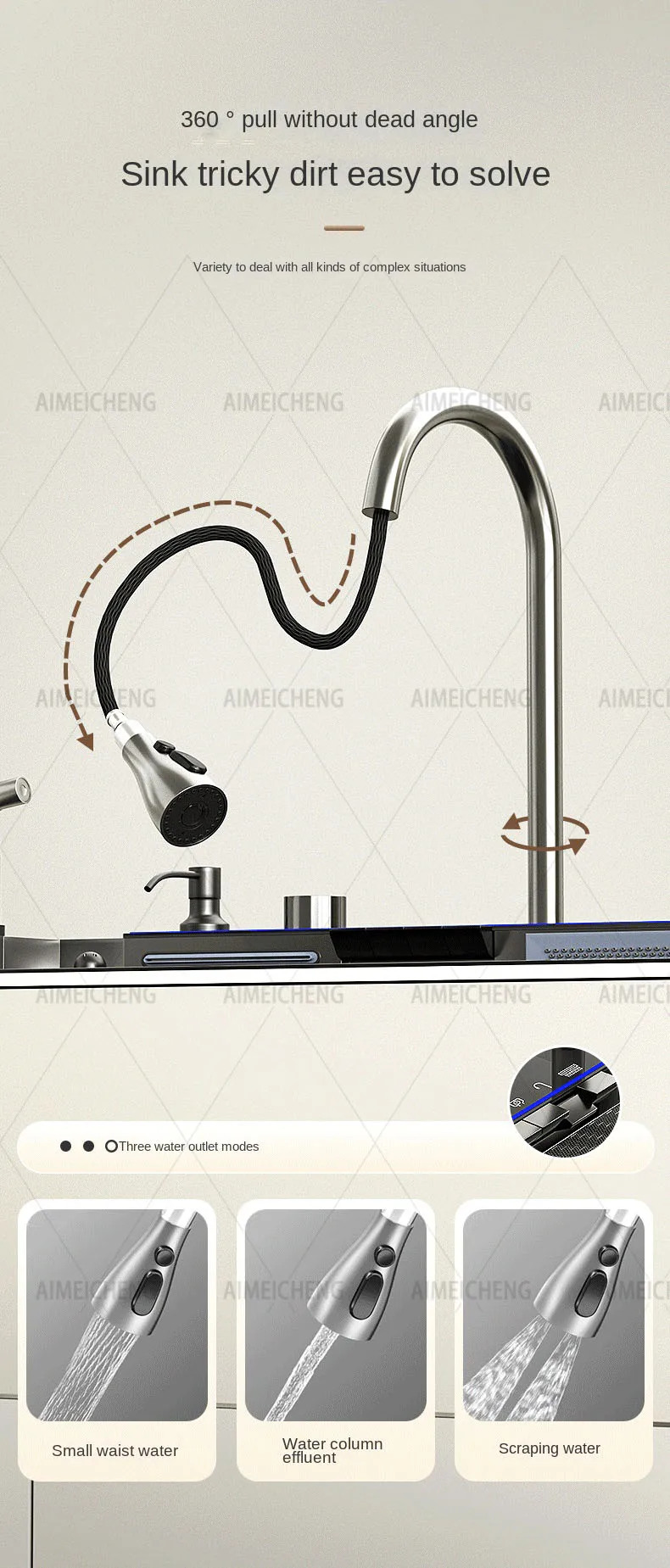 Digital fly rain waterfall sink embossed nano 304 stainless steel large single sink kitchen black washbasin