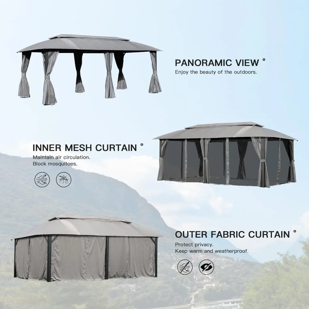 Domi Gazebo 10x20FT, Outdoor Gazebo with Double Roofs, Privacy Curtains, Mosquito Nettings, Heavy Duty Metal Frame Party Tent Ca