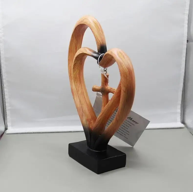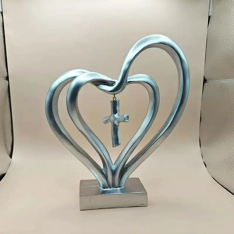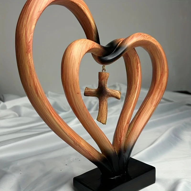 Hearts Cross Sculpture Love And Faith Decor Modern Minimalist Religious Tabletop Accent For Home Or Office Desk Decoration Gifts
