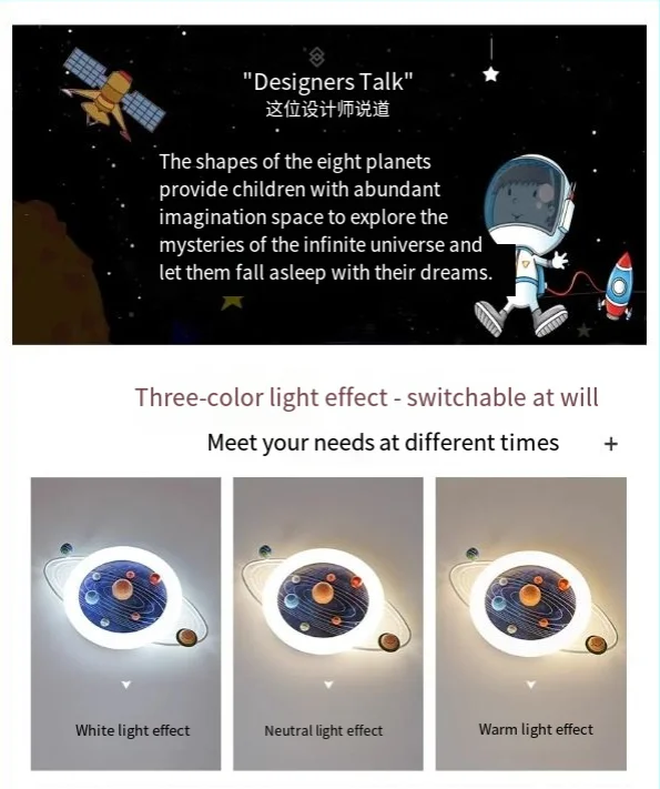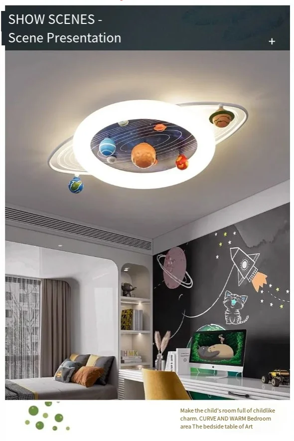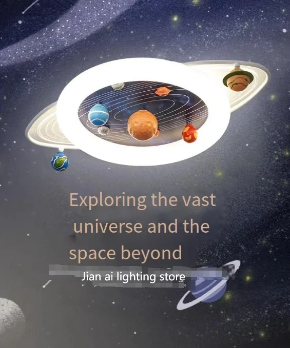 LED Children's Room Lamp Boys' Bedroom Lamp Modern and Simple Girl's Princess Room Planetary Trajectory Ceiling Lamp