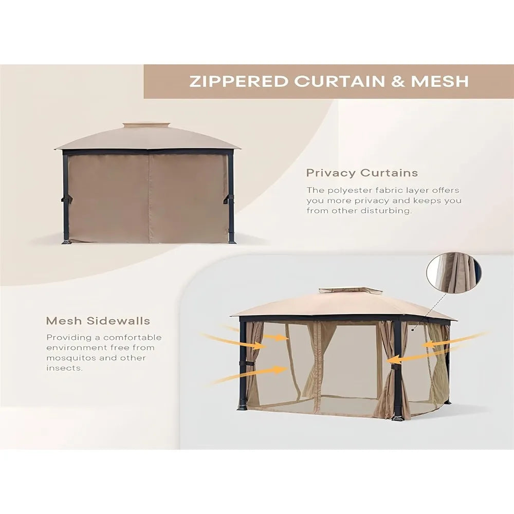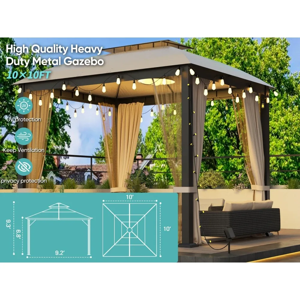 Outdoor Patio Gazebo 10x10, Heavy Duty Gazebos, Soft Top Gazebo with Square Metal Frame, Double Roof Canopy, Mosquito Nets & Pri