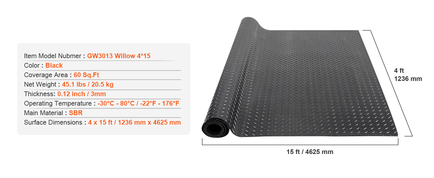Effective Diamond Pattern Waterproofing:Constructed from SBR rubber, the diamond plate mat effectively traps spills and stains. Its sleek black surface remains clean and stylish, while the 3D diamond pattern on the underside provides a solid grip on any floor surface
