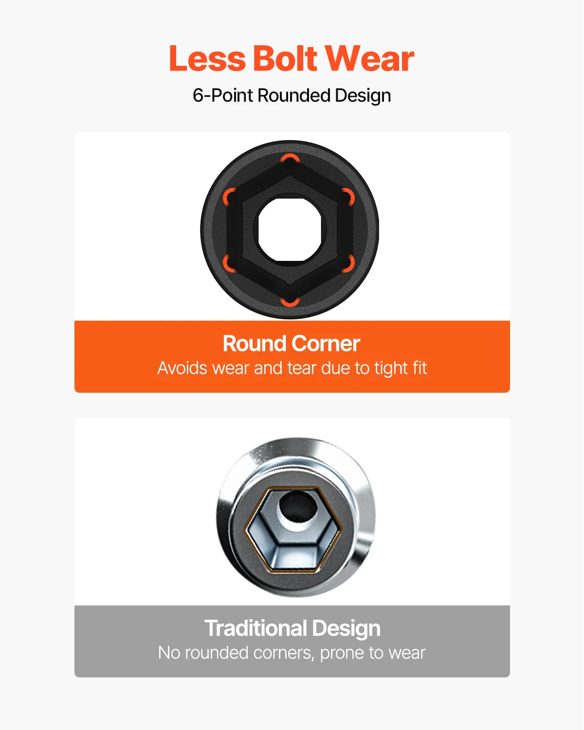 - Six-point deep sockets grip the flats, not the corners, for secure engagement on your wheel lug nuts and stubborn bolts, reducing slipping and rounding.