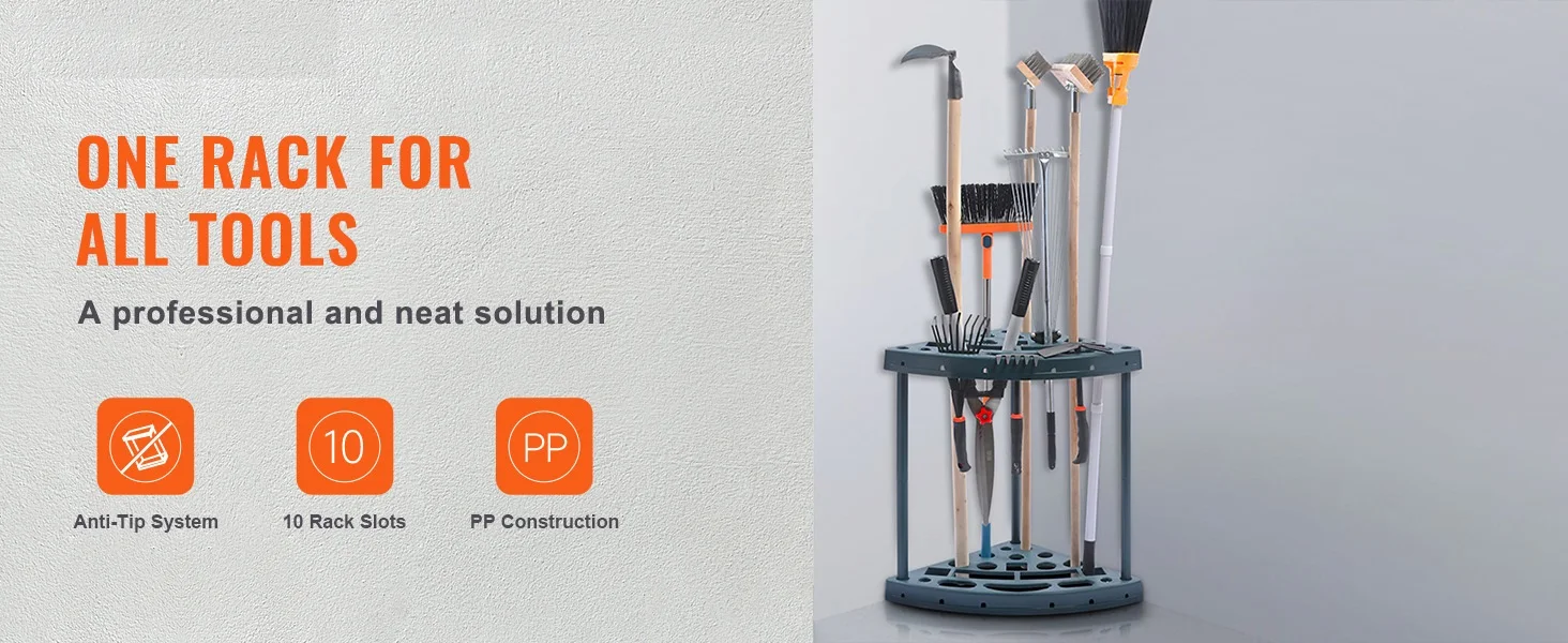 Make Any Space Tidy: Garage, garden, or room – our garden tool storage rack is your space-saving hero. Bringing order to your workspace has never been more fun or professional. It's time to get organized, and we've got just the thing!
