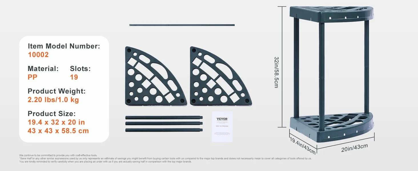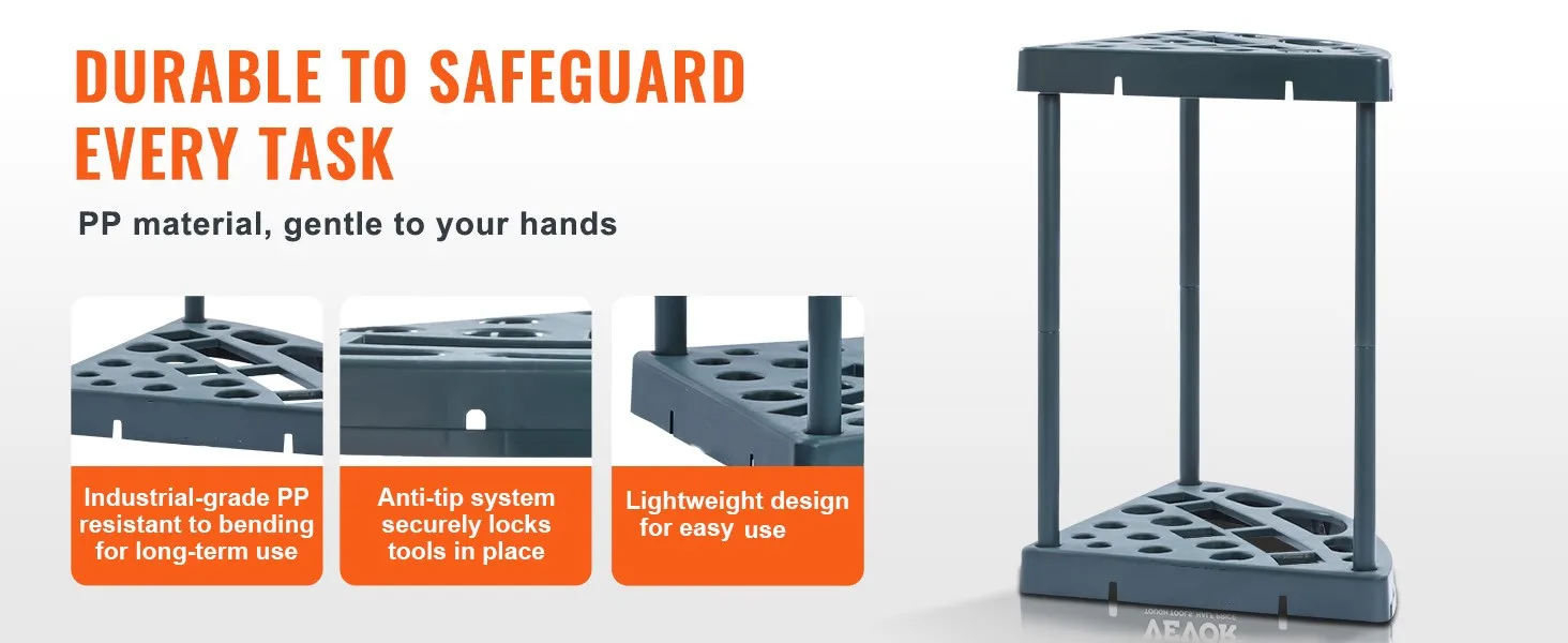 Built to Last: Crafted from top-quality PP (Polypropylene) material, this lawn tool organizer is tough against the elements and wear. It weighs just 2.2 pounds (1 kg) with all parts included. The sturdy vertical pipes enhance stability and load-bearing capacity, making it easy to move while staying rock-solid.