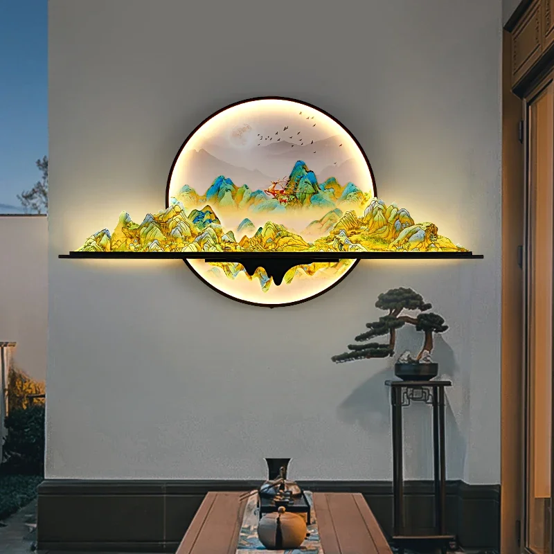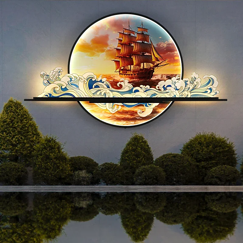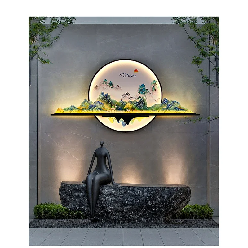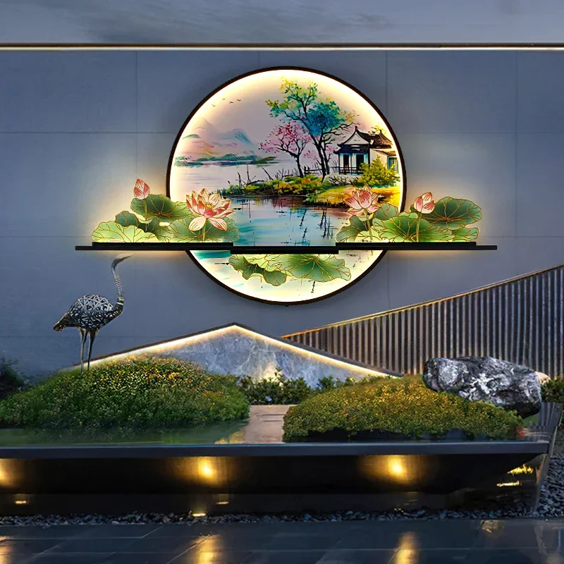 UFULA Solar Outdoor Mural Lamp 1 Meter Diameter Circular Landscape Waterproof Mural Villa Courtyard Garden Decoration Painting